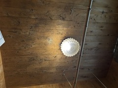 「 腰から下はタイル壁、上部と天井は檜板を貼っていて、かなり黒カビが広がっており、市販の塩素系漂白剤を試しに一部吹き付けたところ、マダラ模様で白くなってしまった」とのことでした。